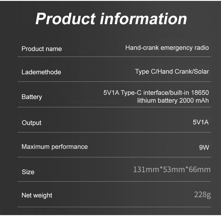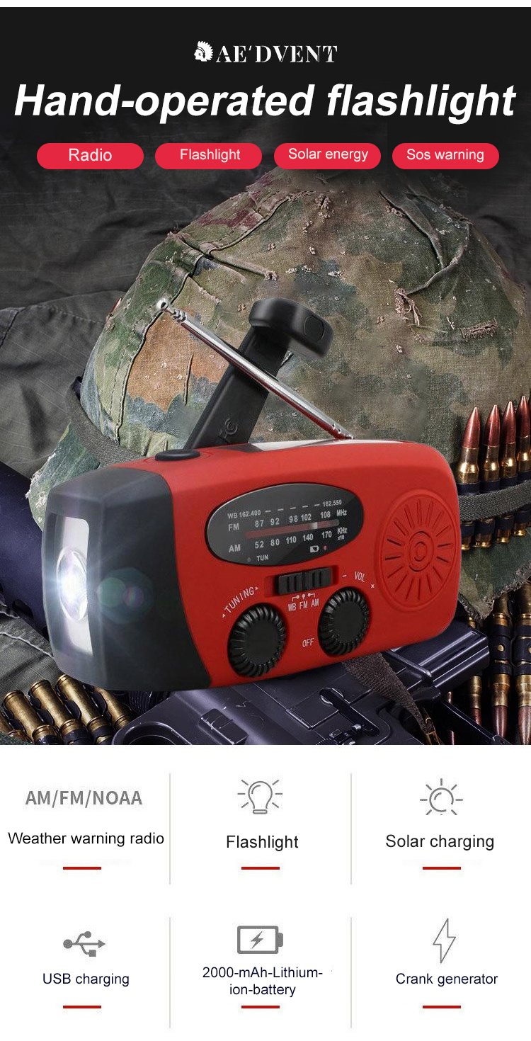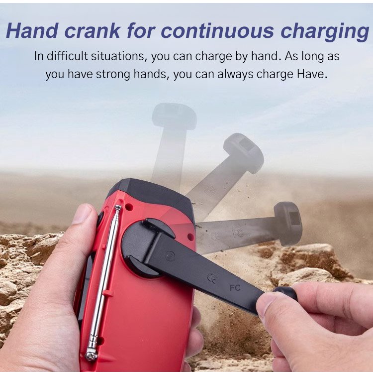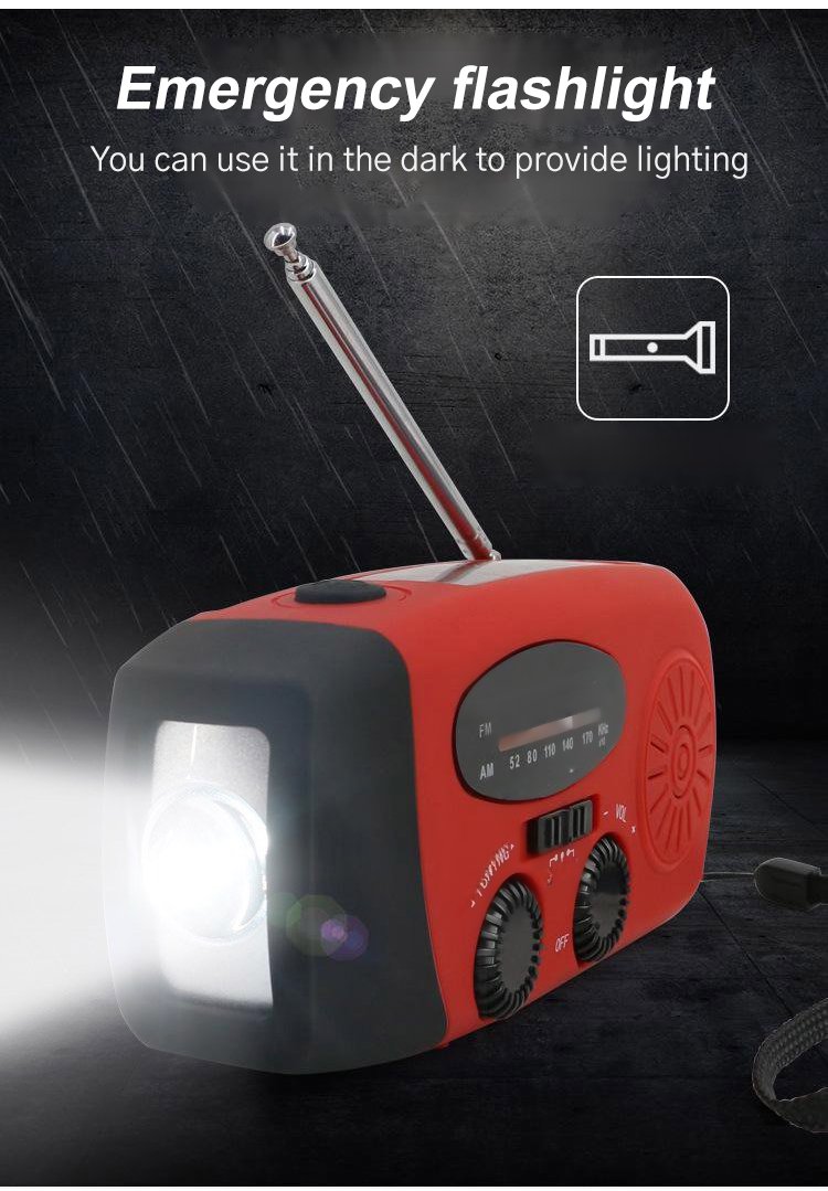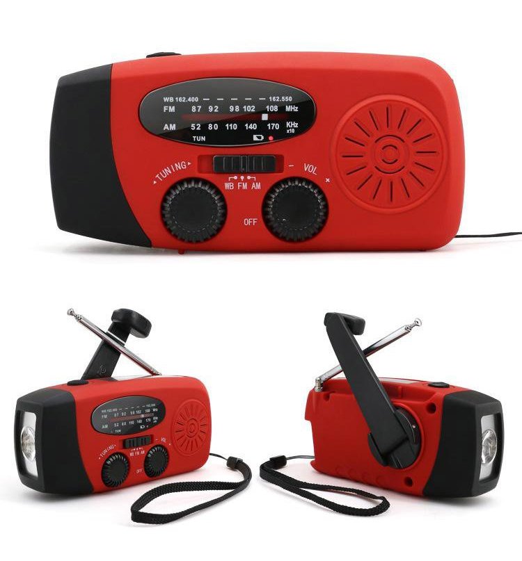 Hand-cranked solar emergency multi-function rechargeable weather warning radio